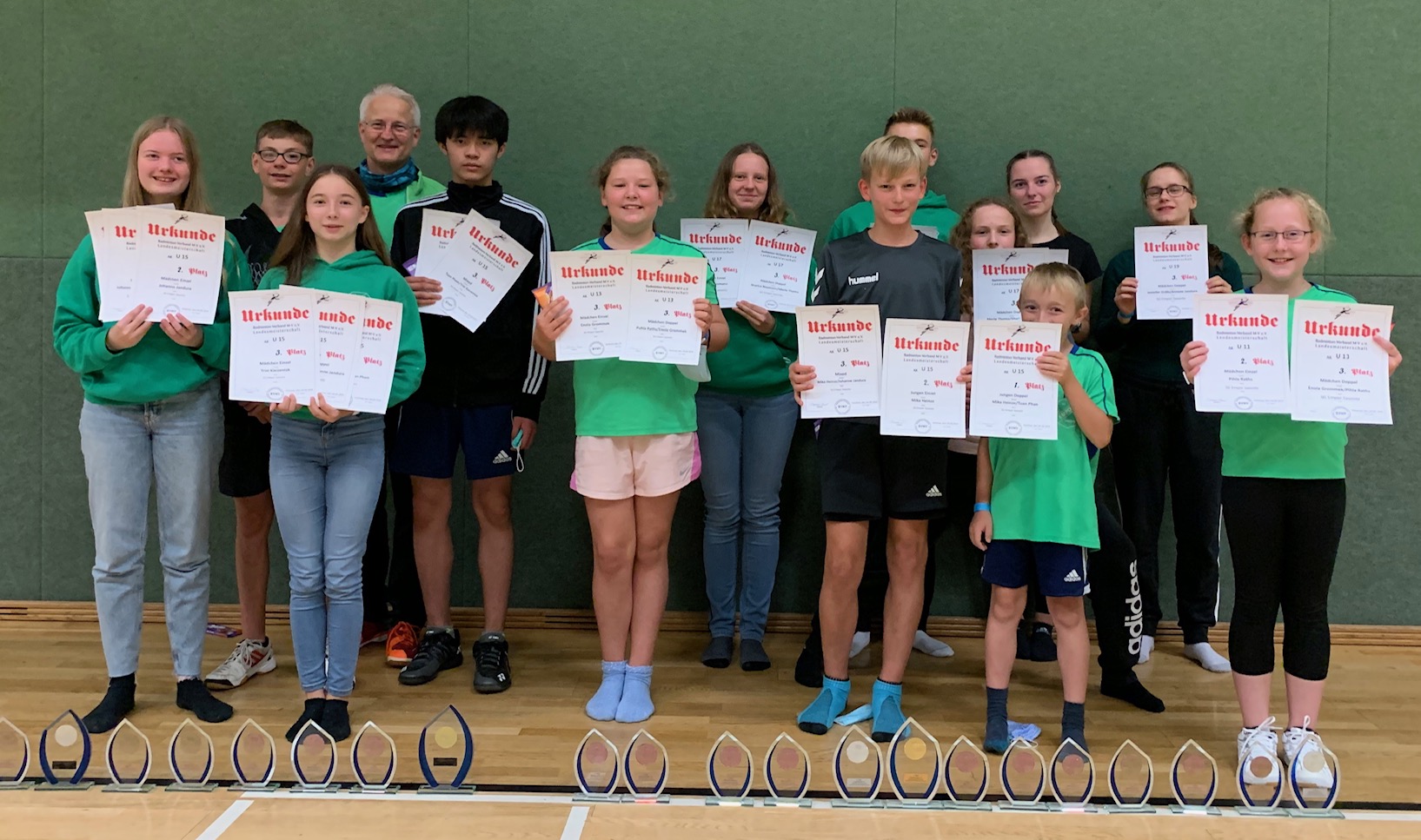 Die erfolgreichsten Starterinnen und Starter waren mit jeweils 3 Pokalen Johanne Jandura, Trixi Kaczeniok und Mika Heinze (alle U15). Sehr motivierend waren auch je 2 Pokale für unsere Neuzugänge Pihla Raths (U11), Enola Grommek (U13) und Tuan Pham (U15), die ihre erste Teilnahme an einer Landesmeisterschaft erleben durften und die noch kein ganzes Jahr intensiv Badminton trainieren, wobei Tuan schon etwas länger im Freizeitbereich dabei war.